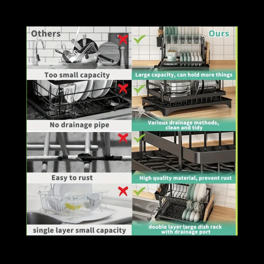¡Despídete del caos en tu cocina! Con el Estante Organizador Escurridor 4 en 1 , tendrás tus platos, vasos, cubiertos y tabla de cortar perfectamente organizados y secos en un solo lugar. Fabricado en acero al carbono resistente y antióxido , este escurridor soporta cargas pesadas y ofrece una solución duradera y elegante para tu cocina. Su diseño compacto y moderno se adapta a cualquier estilo de decoración, optimizando tu espacio sin sacrificar funcionalidad.